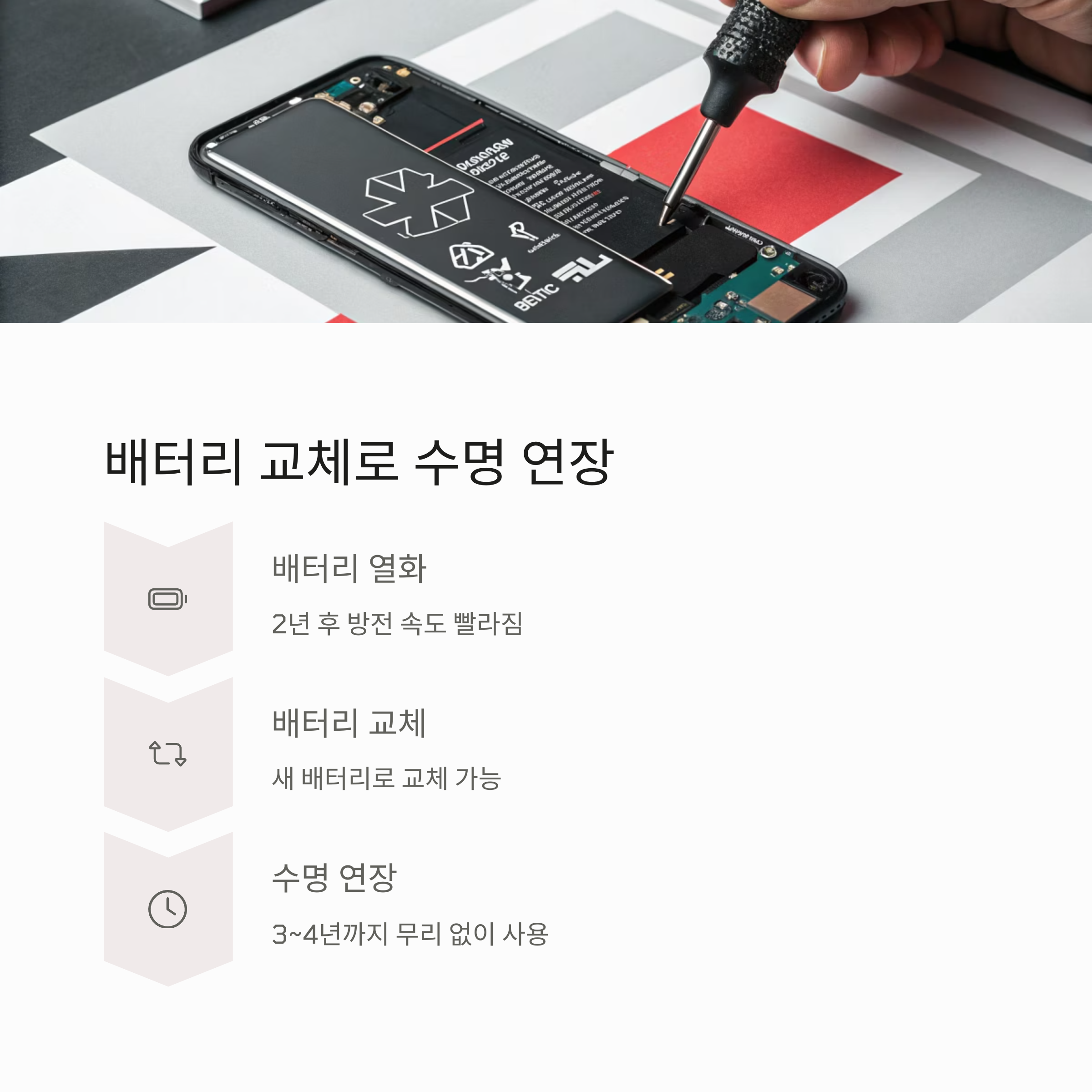 스마트폰 수명 단축의 가장 큰 원인은 배터리 열화입니다.