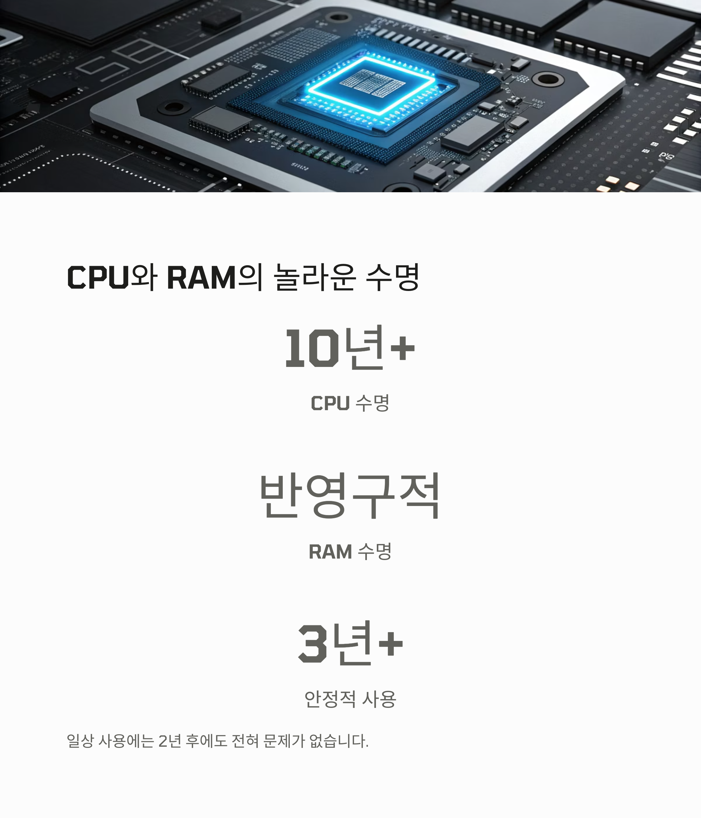CPU는 10년 이상, RAM은 반영구적으로 쓸 수 있는 내구성을 지닙니다.